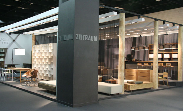 Verantwortungsvolles, nachhaltiges Denken und Handeln bestimmt seit Jahren auch unsere Messearchitektur. Unser Messestand ist auf das Wesentliche reduziert und geprägt von einer formalen Idee, die gleichzeitig konstruktives Prinzip ist: Der Säulenwald aus rohen Baumstämmen. Wir verzichten auf materialintensive Bauten. Die Konstruktion wird aus naturbelassenen, rohen Baumstämmen gebildet, und auch alles “hinter den Kulissen” (Boden/ Unterkonstruktion...) besteht aus rohem Holz und Holzwerkstoffen, die “sauber” und wiederverwertbar sind. Auf unserem Messestand fallen keine Plastikmüllberge an.